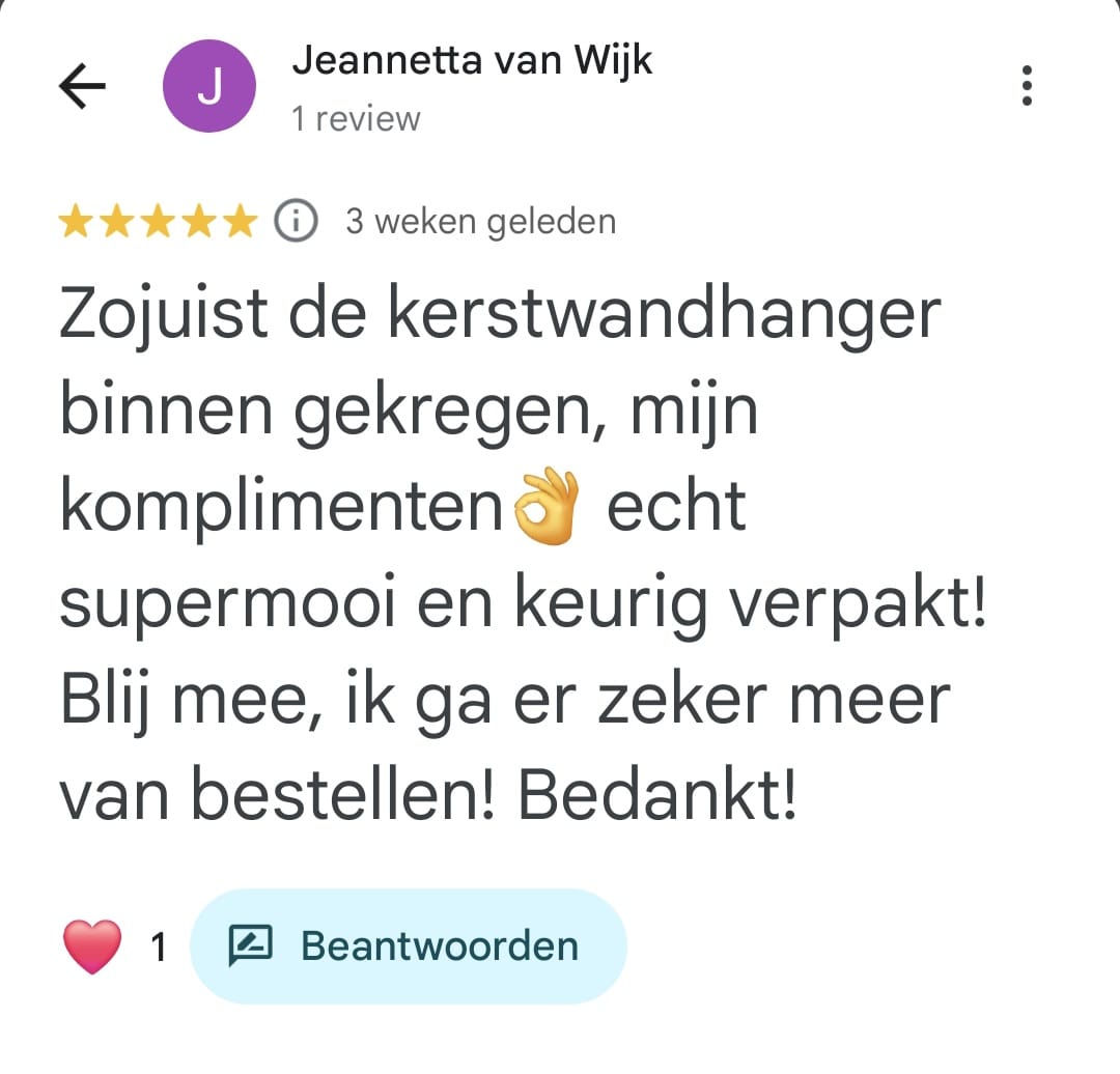 De Kerstwandhanger is ieder jaar razend populair. Binnen enkele weken zijn ze allemaal verkocht.